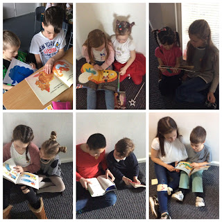 Here we are enjoying sharing stories with our buddies in year 6.